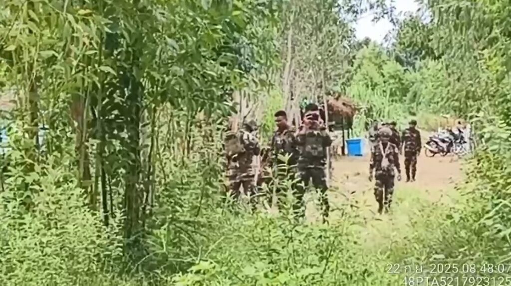 ช่วงเช้าที่ผ่านมาจากการตรวจสอบพบภาพมุมสูงปรากฏว่า มีกลุ่มมวลชนชาวกัมพูชา เดินทางเข้ามาอยู่ที่บริเวณเพิงพักหลังคาสีน้ำเงิน ประมาณ 30-40 คน โดยไม่ได้ออกมาปรากฏตัวในเชิงแสดงออกหรือกระทำอะไร