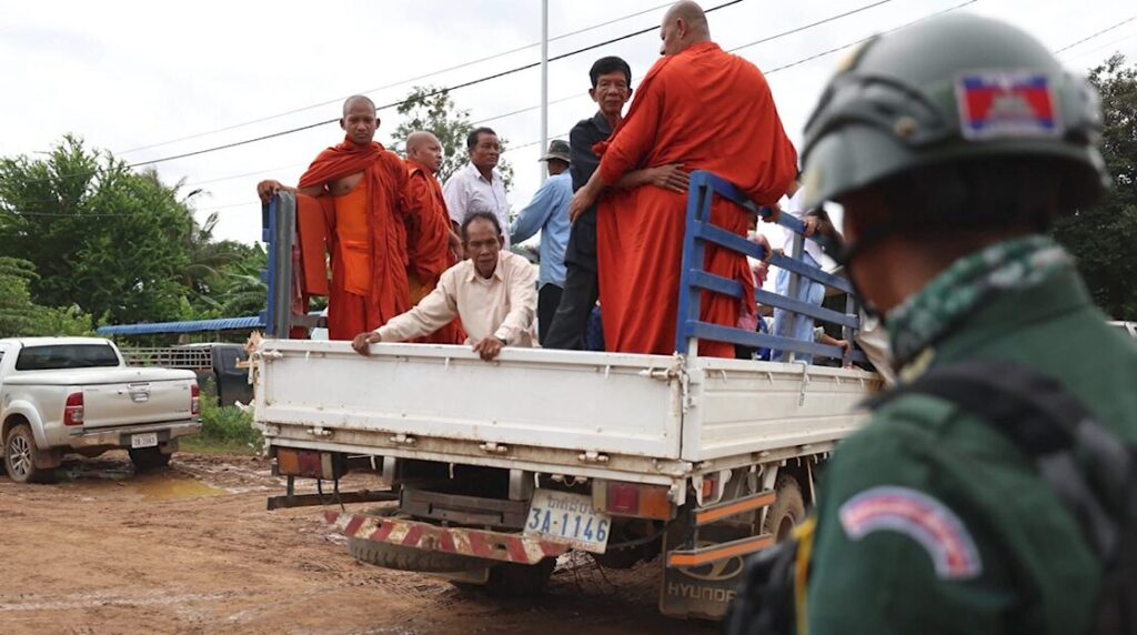 ผู้สื่อข่าวรายงานว่า พื้นที่บ้านหนองจาน และบ้านหนองหญ้าแก้ว อำเภอโคกสูง จังหวัดสระแก้ว เริ่มมีความเคลื่อนไหวจากฝั่งกัมพูชาอย่างต่อเนื่องตั้งแต่เช้า หลังได้รับสัญญาณนัดหมายล่วงหน้าจากผู้นำท้องถิ่นกัมพูชาให้ประชาชนเข้ามาปักหลักรวมตัวบริเวณใกล้แนวรั้วลวดหนามชายแดน โดยพบว่ามีพระสงฆ์ชาวกัมพูชาจำนวนหนึ่งนำหน้าเข้ามา พร้อมด้วยชาวบ้านทั้งชายหญิง ผู้สูงอายุ เด็ก และผู้พิการ รวมแล้วกว่า 100 คน ทยอยเดินทางเข้าพื้นที่อย่างเป็นระเบียบ โดยใช้เส้นทางจากหมู่บ้านเปรยจันและหมู่บ้านใกล้เคียง เพื่อเข้ามาปักหลักอาศัยในเพิงพักชั่วคราวบริเวณชายแดนฝั่งกัมพูชา ตรงข้ามบ้านหนองจาน-หนองหญ้าแก้ว