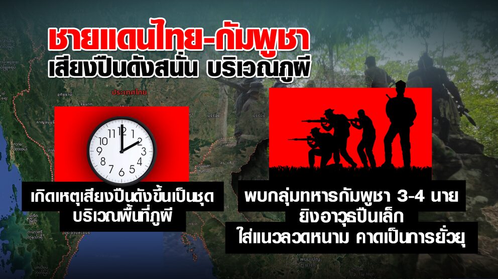 เวลาประมาณ 14.00 น. เกิดเสียงปืนดังขึ้นเป็นชุด บริเวณพื้นที่ภูผี เขตตำบลเสาธงชัย อำเภอกันทรลักษ์ จังหวัดศรีสะเกษ โดยรายงานจากทหารไทยที่ประจำการแนวหน้า ระบุว่า พบกลุ่มทหารกัมพูชาประมาณ 3–4 นาย เคลื่อนเข้ามาแล้วยิงอาวุธปืนเล็กประจำกายหลายนัดใส่แนวลวดหนามที่ใช้กั้นเขตชายแดน คาดว่าเป็นการกระทำเพื่อยั่วยุให้ทหารไทยตอบโต้ แต่ฝ่ายไทยยังคงรักษาความสงบและควบคุมสถานการณ์ไว้ได้