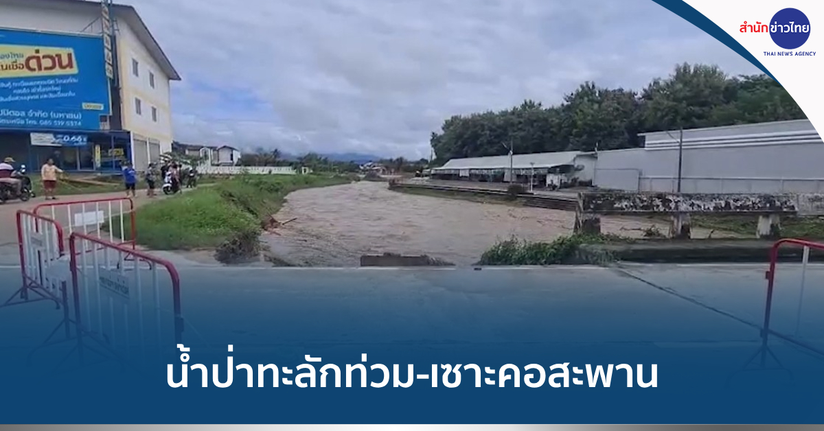 ลำปาง 27 ก.ย. – น้ำป่าดอยขุนตาลทะลักท่วมเขต ต.เวียงตาล อ.ห้างฉัตร จ.ลำปาง สะพานห้างแตรข้ามไปบ้านดอนหัววัง ถูกน้ำเซาะใต้คอสะพานเกือบขาด