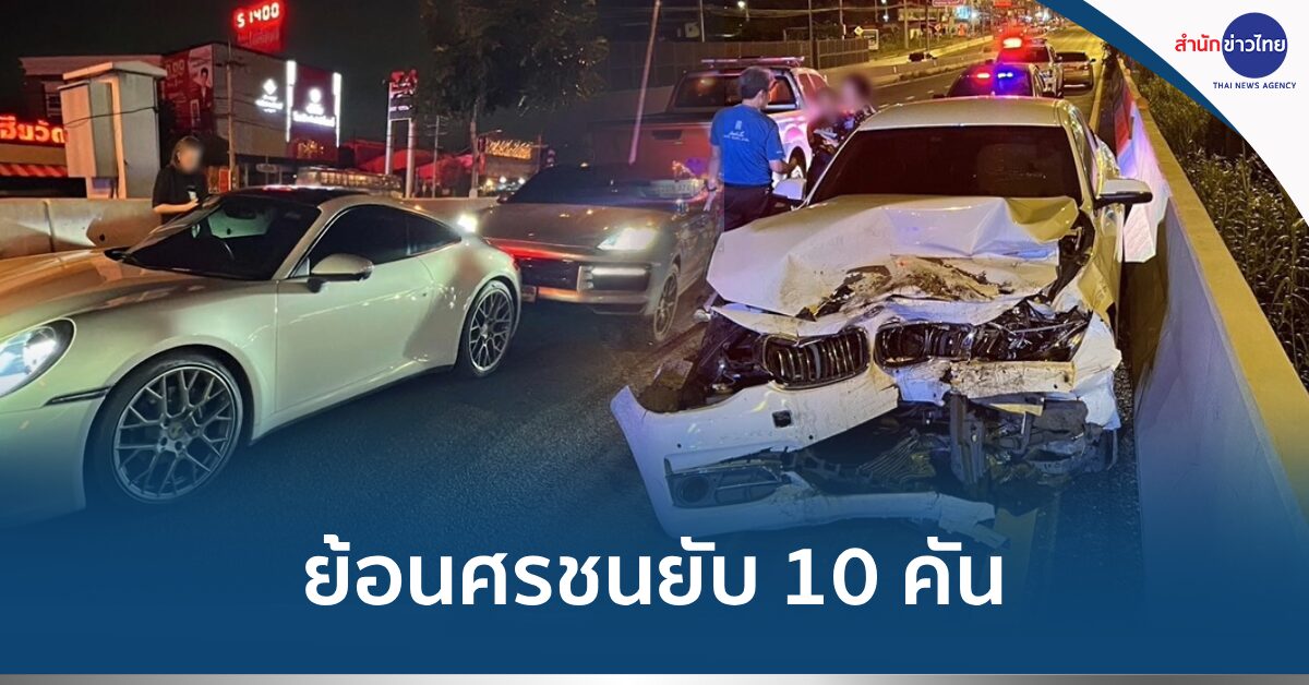 เมื่อคืนวันที่ 30 ก.ย. เจ้าหน้าที่ตำรวจ สภ.ชัยพฤกษ์ เดินทางเข้าตรวจสอบอุบัติเหตุรถยนต์ขับขี่ย้อนศรชนพังยับ 10 คัน ถนนราชพฤกษ์ขาออก หน้าห้างสัมมากร เพลส ต.อ้อมเกร็ด อ.ปากเกร็ด จ.นนทบุรี พร้อมประสานอาสาสมัครมูลนิธิป่อเต็กตึ๊ง ไปให้การช่วยเหลือ