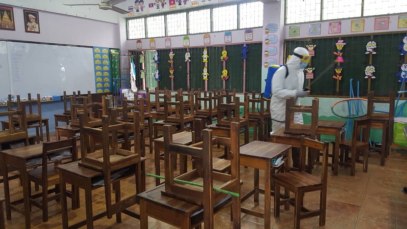 กาญจนบุรี 1 ก.ย.- ระดมฆ่าเชื้อ! โรงเรียนบ้านกุยแหย่ อ.ทองผาภูมิ จ.กาญจนบุรี ปิดสอน 3 วัน ตั้งแต่วันนี้ (1 ก.ย.) หลังพบนักเรียนมีความเสี่ยงบ้านอยู่ใกล้บุคคลกลับจากเมียนมาที่มีไข้สูง หวั่นติดโควิด-19