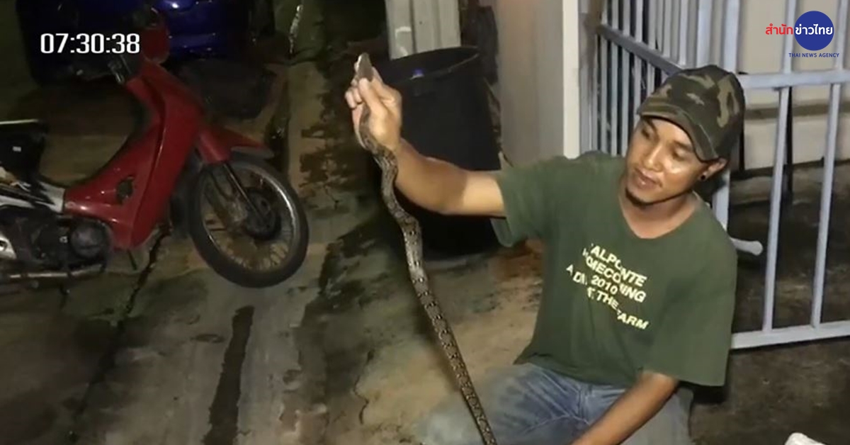 ส่วนงูเหลือมตัวก่อเหตุ เบื้องต้นเจ้าหน้าที่กู้ภัยได้นำไปเก็บไว้ในสถานที่กักขัง เพื่อรอการปล่อยกลับคืนสู่ธรรมชาติต่อไป. – สำนักข่าวไทย