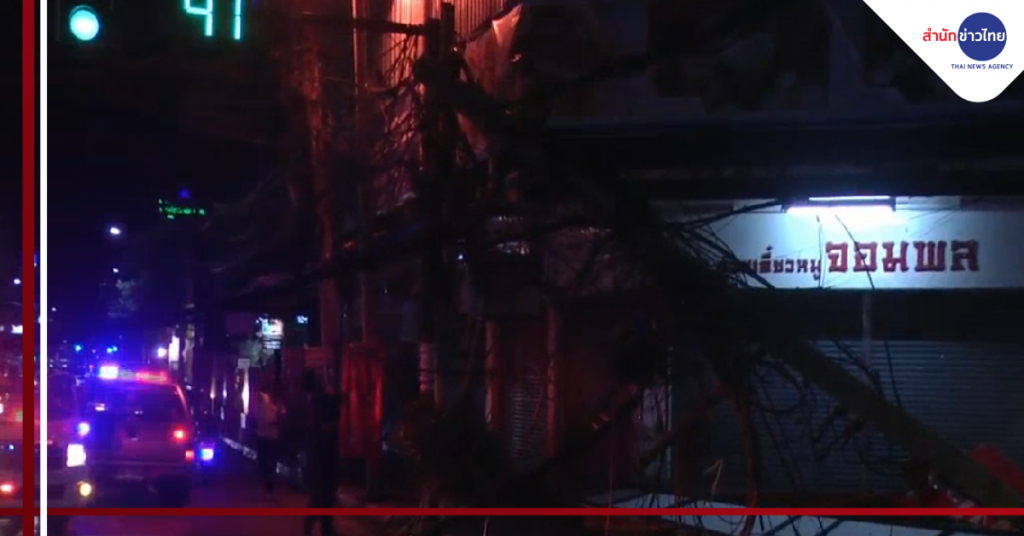 เจ้าหน้าที่การไฟฟ้าเร่งเคลียร์ซากความเสียหาย ใช้เวลาประมาณ 1 ชั่วโมงจึงแล้วเสร็จ ก่อนเปิดใช้เส้นทางตามปกติ.-สำนักข่าวไทย