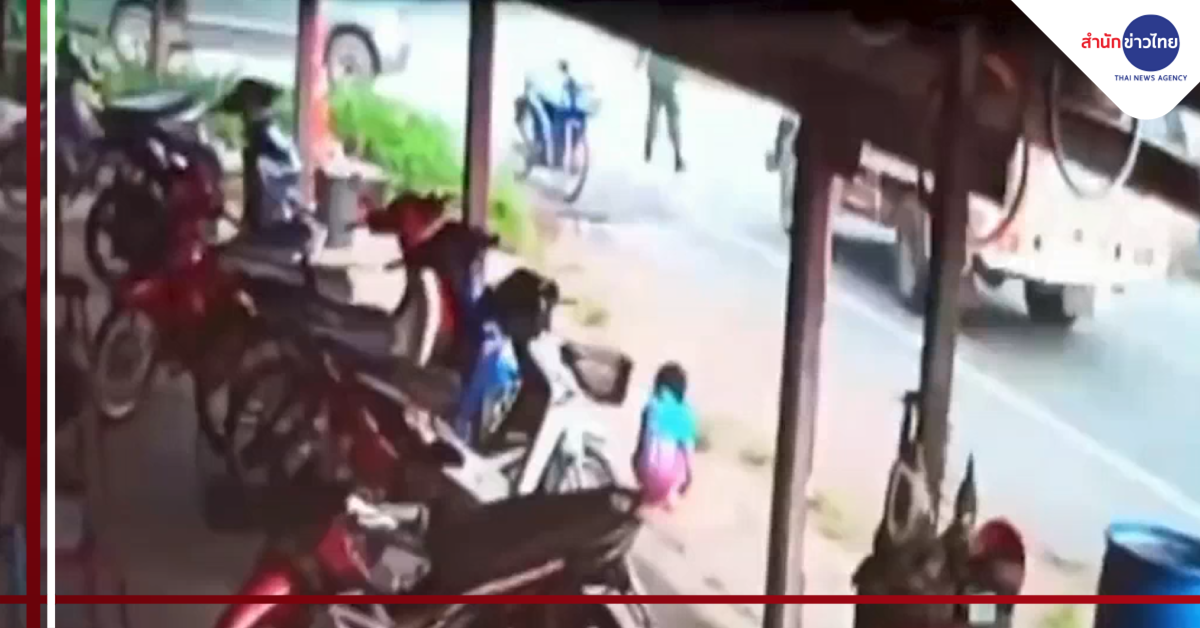 กล้องวงจรปิดจับภาพชายคนหนึ่งซึ่งแต่งกายด้วยชุดทหาร ขี่รถมอเตอร์ไซค์ สีน้ำเงิน มาริมถนนก่อน จะวิ่งข้ามถนน ขณะเดียวกันมีรถบรรทุก 6 ล้อ กำลังวิ่งมาพอดีทำให้หนุ่มใหญ่ถูกชนจนร่างกระเด็นได้รับบาดเจ็บ