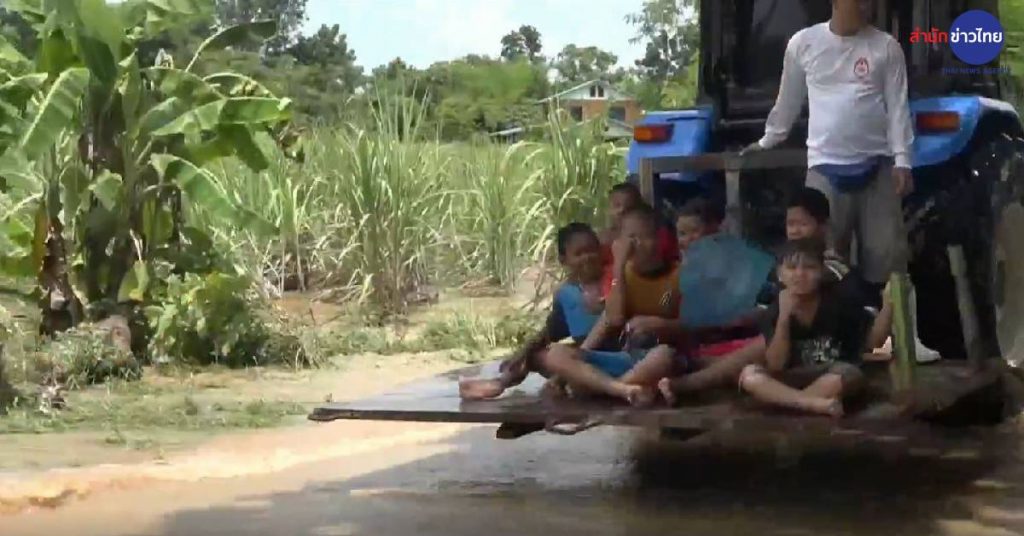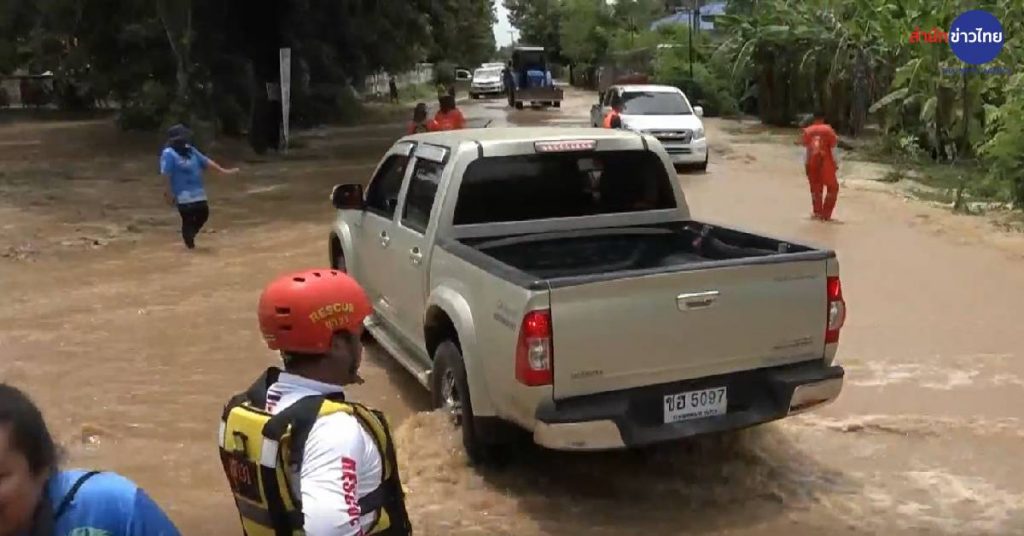 นครราชสีมา 13 ก.ย.-ฝายกั้นน้ำแตกชำรุด มวลน้ำหลากท่วมหมู่บ้านใน อ.โชคชัย จ.นครราชสีมา ระดับน้ำสูง 1 เมตร เจ้าหน้าที่เร่งช่วยเหลือ