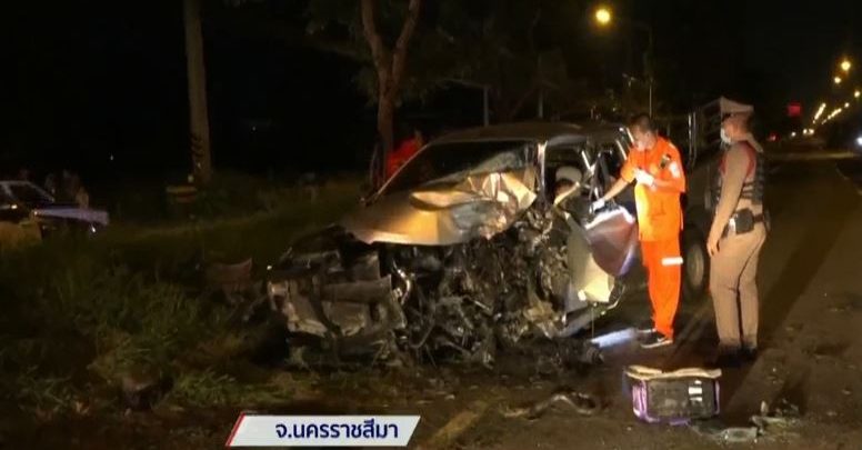 นครราชสีมา 14 ก.ย.- กระบะพุ่งชนต้นไม้คนขับเสียชีวิต บาดเจ็บสาหัส 2 ราย ล้อหลุดกระเด็นชนรถคันอื่นเสียหาย คาดหลับใน