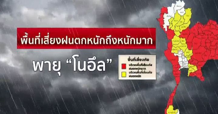 พายุโซนร้อนโนอึล เมื่อเวลา 10.00 น.ยังเป็นพายุระดับ 3 มีศูนย์กลางบริเวณเมืองเว้ ของประเทศเวีดนาม ความเร็วลมสูงสุดใกล้ศูนย์กลาง 75 กิโลเมตรต่อชั่วโมง คาดว่าจะเคลื่อนผ่านประเทศเวียดนาม ลาว และเข้าสู่ภาคอีสานของไทยบริเวณจังหวัดมุกดาหารในช่วงบ่ายวันนี้ คาดว่าพื้นที่ที่จะได้รับผลกระทบ มีดังนี้