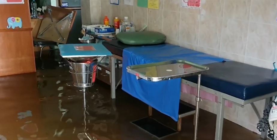 เจ้าหน้าที่และชาวบ้านต้องระดมกำลังช่วยขนสิ่งของหนีน้ำที่ไหลทะลักเข้ามาอย่างต่อเนื่อง ขึ้นไปไว้บนชั้น 2 ของอาคาร และประกาศงดให้บริการทางสาธารณสุขชั่วคราว จนกว่าน้ำจะลดลงสู่ภาวะปกติ ส่วนสาเหตุ คาดเกิดจากการวางท่อระบายน้ำโดยรอบโครงการรถไฟทางคู่ อยู่บนพื้นที่สูงกว่าพื้นที่ที่ตั้งของโรงพยาบาล และท่อน้ำมีขนาดเล็ก ทำให้น้ำระบายไม่ทัน จึงไหลย้อนกลับเข้าท่วมถนนและโรงพยาบาล.-สำนักข่าวไทย