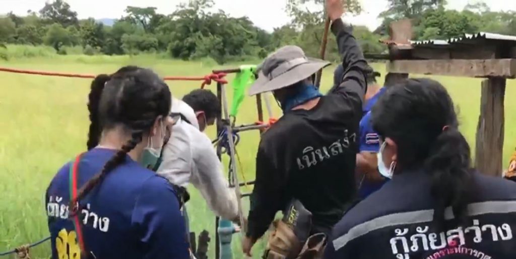 จากนั้นเจ้าหน้าที่ได้ใช้เชือกคล้องร่างผู้ตายดึงขึ้นมา เนื่องจากไม่สามารถโรยตัวลงไปได้ เพราะภายในบ่อน้ำมีแก๊สไข่เน่า สอบสวนภรรยาผู้ตายให้การว่า ปกติผู้ตายจะออกไปทำนาทุกวันและกลับมากินข้าวที่บ้าน แต่ปรากฏว่าไม่พบเห็นผู้ตายมานานกว่า 2 วัน จึงให้น้องเขยออกไปตามหา กระทั่งพบเป็นศพเสียชีวิตอยู่ในบ่อบาดาล คาดว่าน่าจะลงไปซ่อมปั๊มน้ำบาดาลแต่ไม่มีอากาศหายใจจึงเสียชีวิต.-สำนักข่าวไทย
