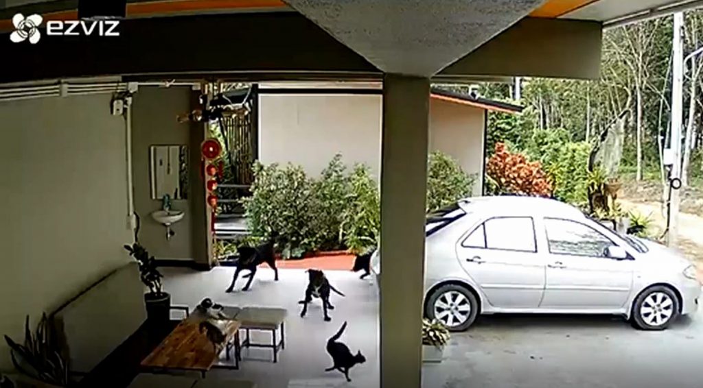 วงจรปิด เผยให้เห็นภาพเหตุการณ์ขณะฝูงสุนัขพันร็อตไวเลอร์ 3 ตัว กำลังไล่แมวที่นอนอยู่บนโต๊ะรับแขกหน้าบังกะโลแห่งหนึ่งใน อ. เมืองกระบี่ จนวิ่งหนีกระเจิง จากนั้นไล่ไก่อีก 1 ตัว ที่เดินหากินอยู่หน้าบังกะโล ก่อนที่สุนัขพันธุ์บางแก้วซึ่งเป็นของเจ้าของบังกะโลออกมาไล่ฝูงสุนัขดังกล่าว แต่ถูกฝูงสุนัขร็อตไวเลอร์ทั้ง3ตัวรุมขย้ำจนได้รับบาดเจ็บสาหัส ก่อนที่จะเดินกลับมาที่บังกะโลด้วยความอ่อนแรง เหตุเกิดที่บังกะโลแห่งหนึ่งในตัวเมืองกระบี่ โดยหลังเกิดเหตุสุนัขบางแก้วทนพิษบาดแผลไม่ไหว นอนขาดใจตายอยู่หลังเคาเตอร์