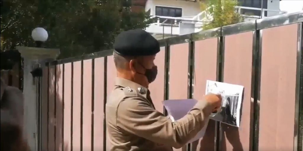 ต่อมา เจ้าหน้าที่ตำรวจ ได้ไปปิดหมายเรียกที่บ้านหลังดังกล่าว พบว่าปิดประตูรั้วบ้านอย่างแน่นหนา และไม่พบว่ามีคนอยู่ในบ้าน แต่ระหว่างที่เจ้าหน้าที่จะทำการปิดหมายที่ประตูรั้ว ได้มีหญิงสูงวัยชาวต่างชาติคนหนึ่งนั่งซ้อนท้ายจักรยานยนต์ชาวต่างชาติอีกคนมาลงหน้าบ้าน และถามเจ้าหน้าที่ตำรวจว่ามาทำอะไร พร้อมใช้กล้องวิดีโอบันทึกภาพตำรวจและผู้สื่อข่าวตลอดเวลา เจ้าหน้าที่ตำรวจท่องเที่ยวจึงชี้แจงเหตุผลการปิดหมาย หญิงคนดังกล่าวปฏิเสธว่าไม่ใช่สุนัขของบ้านนี้ และไม่ยอมให้ตำรวจสอบถามข้อมูลเพิ่มเติม รีบเดินหนีไปทันที.-สำนักข่าวไทย