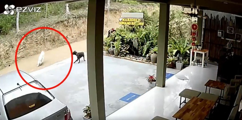 เป็นภาพวงจรปิดที่ น.ส.ฤทัยรัตน์ วงศ์วิวัฒน์ อายุ 38 ปี เจ้าของบังกะโล มารีโกลด์ อ่าวนางรีสอร์ท อ.เมือง จ.กระบี่ นำมามอบให้เจ้าหน้าที่ตำรวจ สภ.เมืองกระบี่ พร้อมซากสุนัขพันธุ์บางแก้ว เป็นหลักฐานในการแจ้งความเอาผิดเจ้าของสุนัขร็อตไวเลอร์ 3 ตัว ที่เข้าไปภายในบังกะโล ไล่กัดแมวและไก่ ก่อนที่สุนัขบางแก้วของ น.ส.ฤทัยรัตน์ จะออกไปช่วย แต่ถูกฝูงร็อตไวเลอร์รุมกัดจนตาย เหตุเกิดเมื่อวันที่ 19 ก.ย.ที่ผ่านมา ซึ่งทราบว่าเจ้าของร็อตไวเลอร์เป็นชาวต่างชาติ อาศัยอยู่บ้านเช่าหลังหนึ่ง ห่างจากที่เกิดเหตุประมาณ 300 เมตร โดยยังไม่ยอมออกมาแสดงตัว แม้ว่าเจ้าหน้าที่จะประสานไปทางเจ้าของบ้านเช่าให้ช่วยติดต่อแล้วก็ตาม