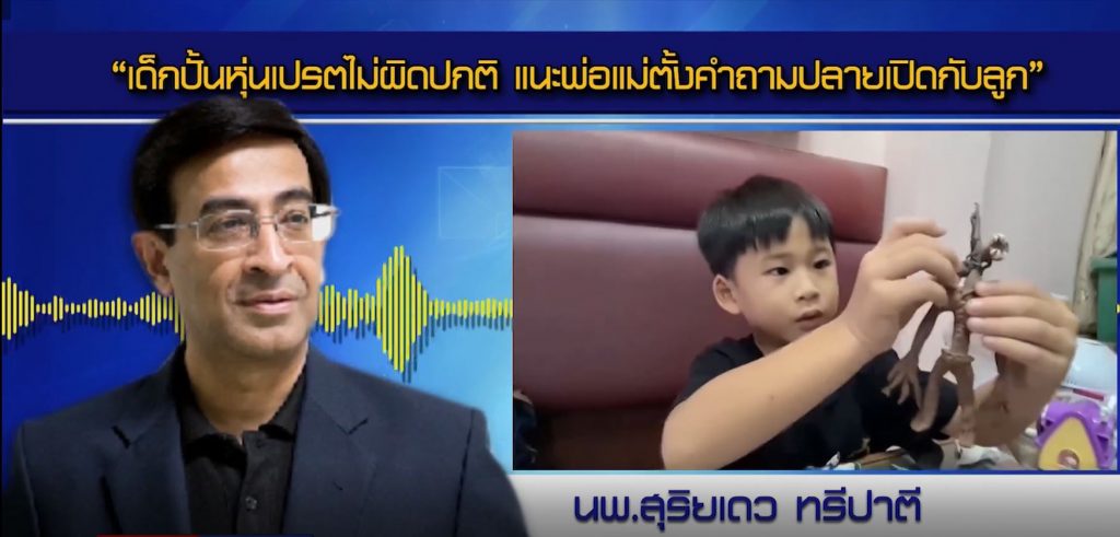 เรื่องนี้ ทีมข่าวโทรไปสอบถามขอความเห็น จาก นพ.สุริยเดว ทรีปาตี กุมารแพทย์ผู้เชี่ยวชาญเวชศาสตร์วัยรุ่น เล่าให้ฟังว่า ในมุมมองของแพทย์ ในเด็กในวัย 4 ขวบแน่นอนว่าน้องมีจินตนาการในการคิดในการเล่นอยู่แล้วทุกคน ซึ่งไม่ใช่เรื่องแปลก หรือเรื่องผิดปกติแต่อย่าง แต่ก็ไม่แปลกที่คุณแม่จะมองว่ามีความน่ากังวล แต่อยากให้หันกลับมามองว่าการที่พ่อแม่เลี้ยงลูกในรูปแบบสังคมเมือง มีความปัจเจก และการมีลูกน้อยลง ทำให้เด็กก็ไม่รู้จะไปเล่นกับใคร จะออกไปเล่นกับข้างบ้านก็ทำไม่ได้ เมื่อประกอบกับการที่เด็กไปเห็น หรือไปดูอะไรมาแล้วเกิดความประทับใจก็ไม่แปลกที่เด็กจะอยู่กับความชอบ และเกิดจินตนาการกับสิ่งนั้นๆ ในมุมมองของหมอ การที่จะบอกว่าเด็กจะปกติ หรือผิดปกติ ทางการแพทย์แนะว่าให้สังเกตใน 3 อย่าง