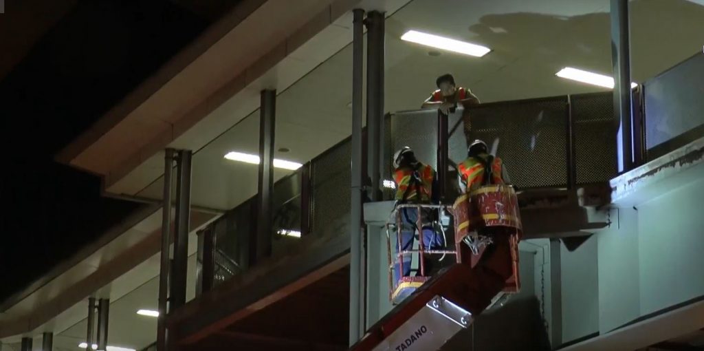 (23 ก.ย.63) ช่วงกลางดึก เจ้าหน้าที่ได้นำเครื่องมืออุปกรณ์เร่งทุบแผ่นปูนริมขอบทางเดินของรถไฟฟ้าบริเวณสถานีศูนย์ราชการที่หลุดร่อนแล้ว เมื่อช่วงเช้าของวันนี้ผู้สื่อข่าวได้เดินทางเข้าตรวจสอบอีกครั้ง พบว่าแผ่นปูนถูกทุบออกทั้งหมดเป็นแนวยาว จนท.เกรงว่าแผ่นปูนจะเกิดหลุดร่อนและร่วงหล่นลงไปอีกซึ่งอาจจะทำให้เกิดอุบัติเหตุและเป็นอันตรายกับผู้ที่ใช้รถใช้ถนนที่ผ่านจุดดังกล่าว ส่วนการซ่อมแซมใหม่นั้นคงต้องรอให้ทางผู้บริหารของรถไฟฟ้า MRT ชี้แจงถึงขั้นตอนและรายละเอียดอีกครั้งหนึ่ง.-สำนักข่าวไทย