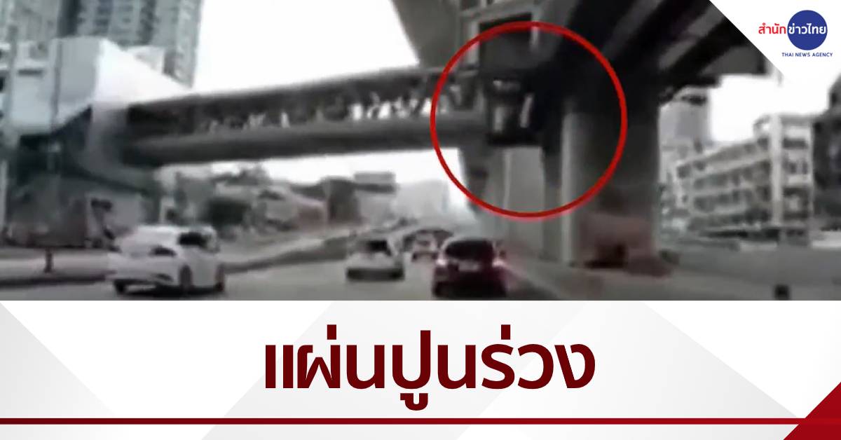 นนทบุรี 23 ก.ย.-น่ากลัวมาก! แผ่นปูนทางเดินรถไฟฟ้าสายสีม่วง หล่นกลางถนน หวิดโดนรถขับผ่าน เจ้าหน้าที่เข้าตรวจสอบและเร่งซ่อมแซม