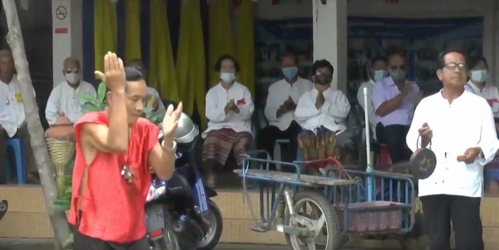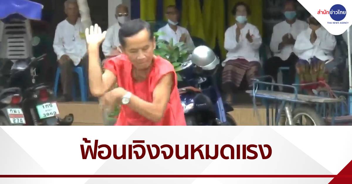 คุณตาตาล สมศรี วัย 79 ปี ผู้สูงอายุในโรงเรียนผู้สูงอายุวัดดอนตัน ต.ป่าซาง อ.ดอกคำใต้ จ.พะเยา โชว์ฟ้อนเจิง และตบมะผาบ ศิลปะของชาวล้านนาที่สืบทอดกันมายาวนาน ซึ่งแต่เดิมเชื่อว่าก่อนจะออกทำศึกสงคราม จะต้องมีการฟ้อนเจิงและตบมะผาบ เพื่อสร้างขวัญกำลังใจและข่มขู่คู่ต่อสู้ การฟ้อนมีท่วงท่าลีลาถึง 7 ขุม หรือ 7 กระบวนท่า แต่คุณตาฟ้อนไปได้แค่ครึ่งทาง เพียง 3 ขุม ก็ต้องขอยอมแพ้ให้กับสังขาร แข้งขาหมดแรงแทบเดินไม่ไหว จนเพื่อนผู้สูงอายุต้องเข้ามาช่วยปฐมพยาบาล หายาดม และพัดให้คลายเหนื่อย แม้ขาจะไร้เรี่ยวแรง แต่คุณตาหัวใจยังสู้ ใช้มือออกท่วงท่า จนเพื่อนผู้สูงอายุต่างหัวเราะชอบใจ. – สำนักข่าวไทย