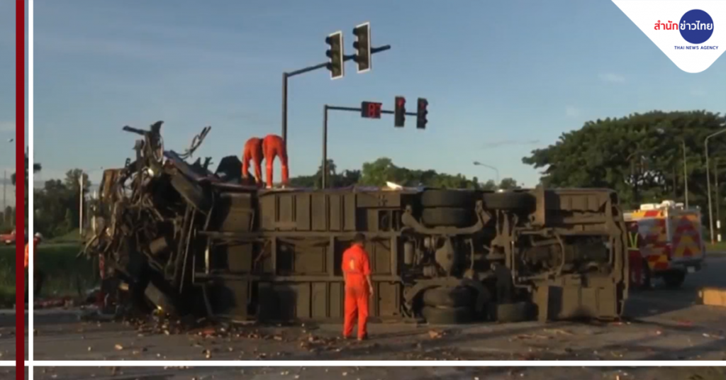 นครราชสีมา 26 ก.ย.-บัสนำเที่ยวชนรถบรรทุกพ่วง เสียชีวิต 8 ศพ บาดเจ็บ 46 ราย คาดคนขับหลับใน ผู้โดยสารบอกให้จอดไม่ยอมฟัง