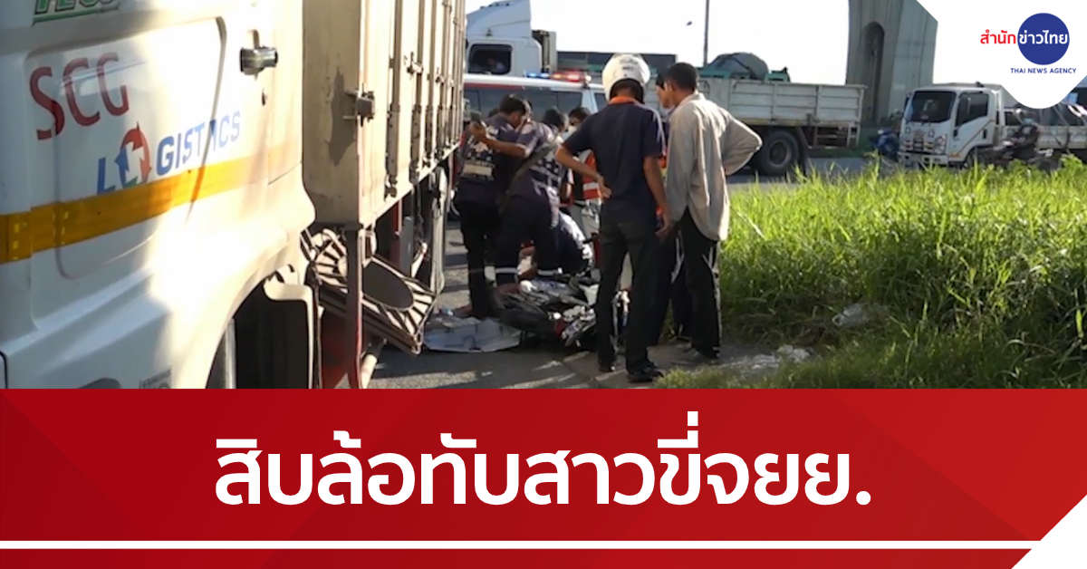 ฉะเชิงเทรา 26 ก.ย.-สาววัย 29 ขี่รถจักรยานยนต์จะไปรับแฟนหนุ่มที่โรงงาน ระหว่างทางขี่ประกบรถบรรทุกสิบล้อ ก่อนถูกรถสิบล้อที่เลี้ยวเข้าซอยเบียดจนล้มแล้วทับซ้ำตายคาที่