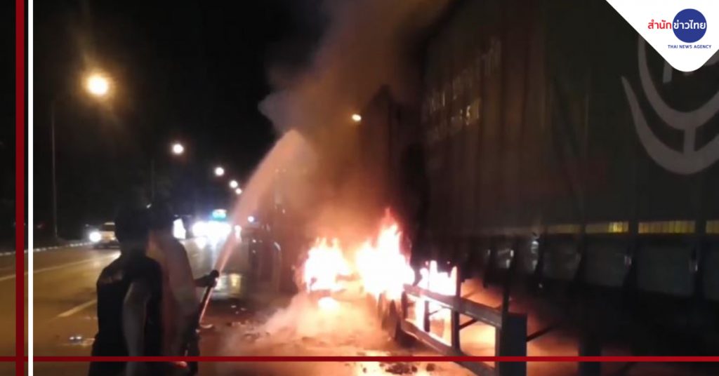 อ่างทอง 27 ก.ย. – รถ 18 ล้อ บรรทุกแร่ พุ่งชนท้ายรถเทรลเลอร์ ทำให้เกิดไฟลุกท่วมรถ 18 ล้อ เสียหาย โชคดีคนขับหนีออกมาได้ทัน บาดเจ็บเล็กน้อย