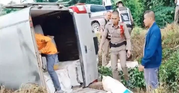 บึงกาฬ 28 ก.ย.- แก๊งค้ายาซิ่งกระบะแหกจุดสกัดบริเวณบ้านดงสว่าง ต.โพธิ์หมากแข้ง อ.บึงโขงหลง เสียหลักพลิกคว่ำข้างทาง ทิ้งยาบ้ากว่า 18 ล้านเม็ดหลบหนี