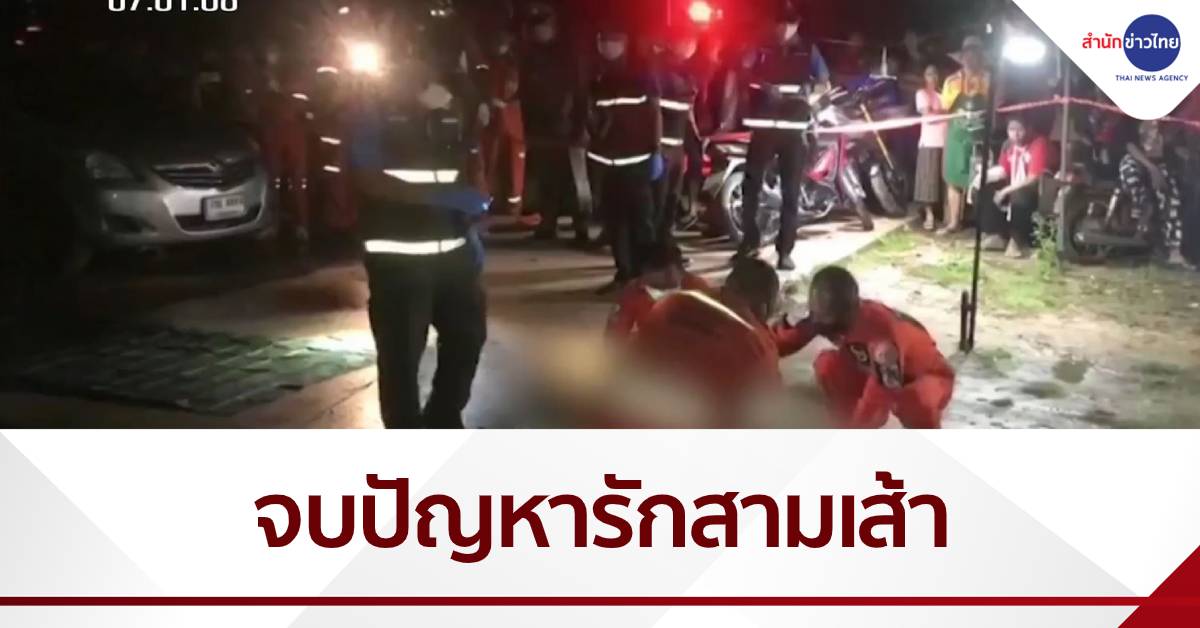 สอบสวนทราบว่า ผู้ตายทั้งสองคนเป็นสามีภรรยากัน ประกอบอาชีพค้าขาย เมื่อช่วงค่ำเห็นพูดคุยกันเรื่องหย่าร้างและตกลงเรื่องทรัพย์สิน หลังฝ่ายชายจับได้ว่า ฝ่ายหญิงแอบไปมีแฟนใหม่ เพราะฝ่ายชายเคยมีเมียมีลูกมาแล้ว ส่วนฝ่ายหญิงยังสาวยังสวยและมีลูกด้วยกัน 1 คน อายุ 3 ขวบ แต่คาดว่าทั้งคู่ตกลงกันไม่ได้ ฝ่ายสามีจึงเปิดฉากใช้ปืนจ่อยิงภรรยาเสียชีวิต ก่อนยิงตัวเองตายตาม จบปัญหารักสามเส้า