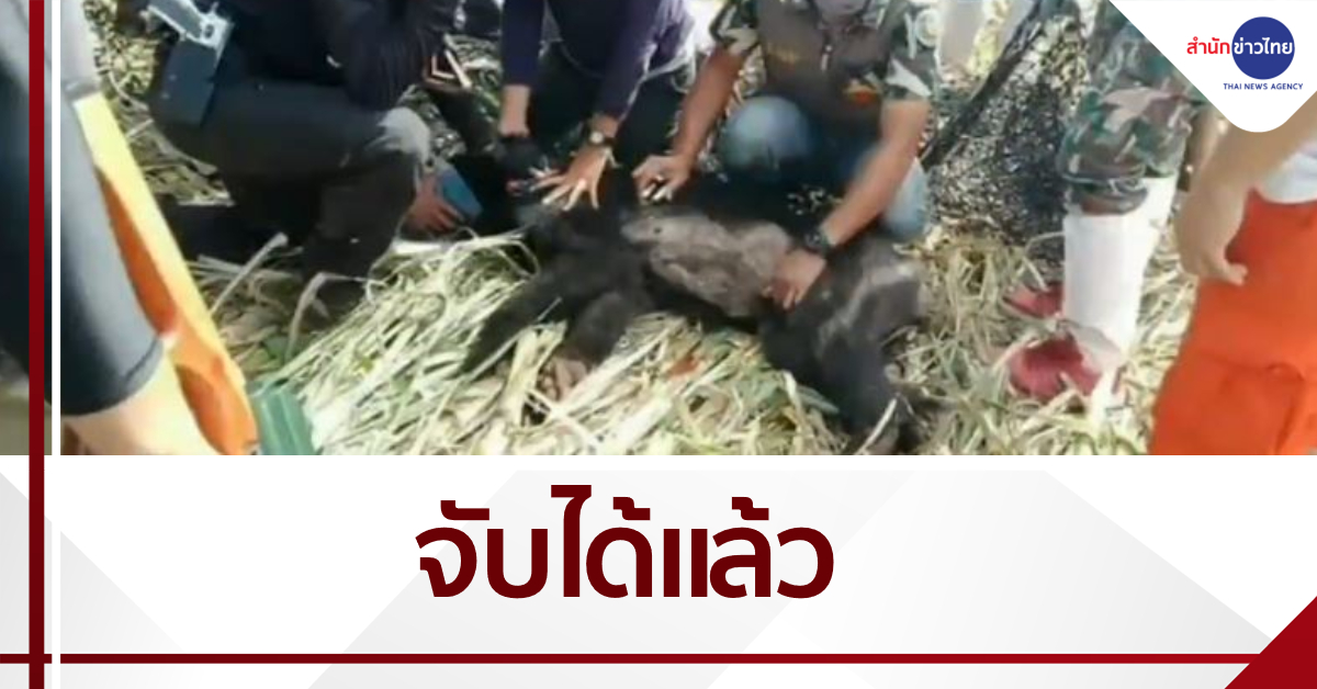 เจ้าหน้าที่กู้ภัย และป่าไม้ กระชับวงล้อมเพื่อหาแม่หมีควายที่หลบซ่อนตัวอยู่ในป่าอ้อย ข้างวัดพรหมสุทธิสาร ต.กุดเลาะ อ.เกษตรสมบูรณ์ จ.ชัยภูมิ โดยนำโดรนขึ้นบินหาพิกัดหมี 3 แม่ลูก ก่อนพบตัวหมีควายแม่ลูกอ่อนตัวแม่ขนาดใหญ่โผล่ออกจากที่ซ่อนมากินอ้อยอยู่ห่างจากกรงดักสัตว์ที่ตั้งอยู่ริมหนองน้ำประมาณ 3-4 เมตร จึงยิงยาสลบใส่แม่หมี จากนั้นได้ระดมกำลังนำตาข่ายล้อมจับลูกหมีได้สำเร็จ จึงนำเข้ากรงขนย้ายหมีแม่ลูกทั้ง 3 ตัว กลับไปอนุบาลที่ศูนย์พิทักษ์ป่าศาลาพรม ตำบลทุ่งลุยลาย อำเภอคอนสาร จังหวัดชัยภูมิ ก่อนนำปล่อยบนภูเขาเขียว ต.คอนสาร อ.คอนสาน จ.ชัยภูมิ.-สำนักข่าวไทย