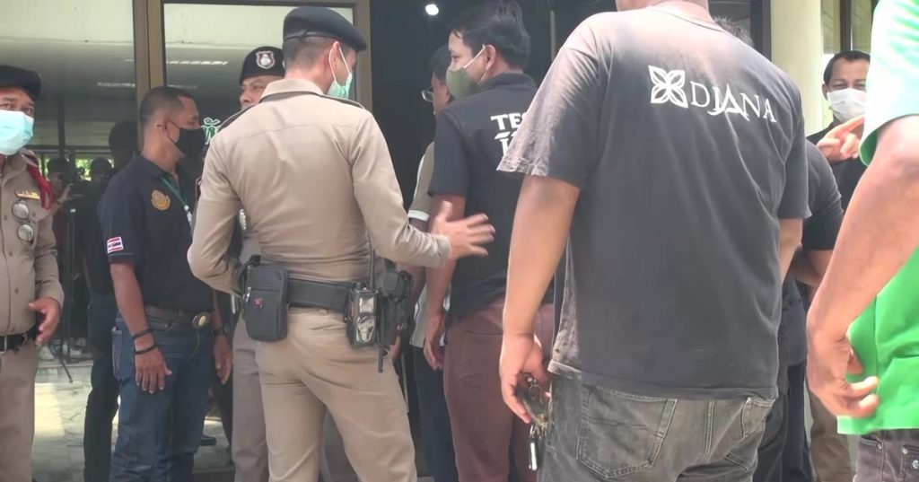 สงขลา 4 ต.ค.-ระดมกำลังตำรวจตรวจเข้มเจ้าหน้าที่ทุกคนก่อนเข้าประชุมกับประธานบอร์ดองค์การสวนสัตว์ ป้องกันไม่ให้เกิดเหตุร้ายซ้ำรอย หลังเกิดเหตุสะเทือนขวัญยิงดับ 2 ศพที่สวนสัตว์สงขลา