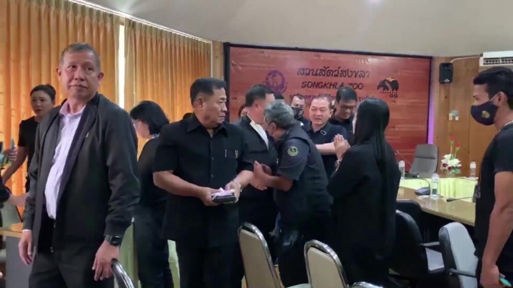ล่าสุดเมื่อช่วงเที่ยงของวันนี้(4 ต.ค.) นายชวลิต ชูขจร ประธานกรรมการ(บอร์ด)องค์การสวนสัตว์แห่งประเทศไทย พร้อมคณะ ได้เดินทางลงพื้นที่สวนสัตว์สงขลา เพื่อติตามข้อเท็จจริงของเรื่องนี้ และให้กำลังใจเจ้าหน้าที่สวนสัตว์สงขลา ซึ่งตอนนี้เสียขวัญและกำลังใจมาก โดยก่อนเข้าประชุมมีการตรวจอาวุธเจ้าหน้าที่ที่เข้าร่วมประชุมทุกคนเพื่อความปลอดภัย