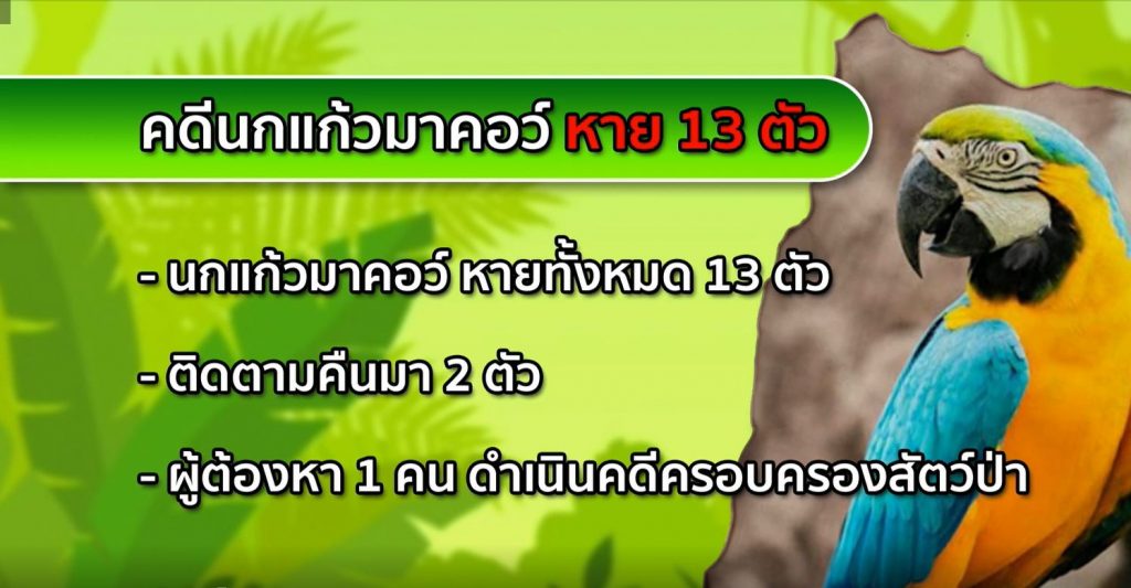 ส่วนกรณีนกแก้วมาคอว์ที่หายไป 13 ตัว สวนสัตว์สงขลาสามารถติดตามคืนมาได้ 2 ตัว พร้อมผู้ต้องหา 1 คนที่นำมาโพสต์ขาย แต่คดีนี้ศาลยกฟ้องผู้ต้องหา ในข้อหาลักทรัพย์ เนื่องจากไม่สามารถยืนยันได้ว่านกแก้วมาคอว์เป็นของสวนสัตว์สงขลาหรือไม่ และผู้ต้องหามีพฤติการณ์เพียงแค่ดำเนินคดีครอบครองสัตว์ป่าเท่านั้น ซึ่งคดีนี้พนักงานสอบสวน สภ.เมืองสงขลา จะรื้อคดีขึ้นมาใหม่เช่นกัน