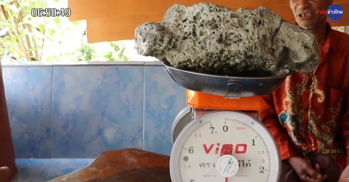 เมื่อวานนี้ (6 ต.ค.) นายพงษ์พันธ์ ทองสลับ ผู้ใหญ่บ้าน หมู่ที่ 7 ต.เขาไม้แก้ว อ.สิเกา จ.ตรัง พาผู้สื่อข่าวลงพื้นที่พิสูจน์ “อำพันทะเล” หรือ “อ้วกวาฬ” ที่ชาวประมงพื้นบ้านพบลอยอยู่กลางทะเล ระหว่างบ้านแหลมไทรกับเกาะไหง ผู้ที่พบ คือ นายโชคอนันต์ จงรักษ์ หนุ่มชาวประมงพื้นบ้าน ได้นำก้อนอำพันทะเล หรือ อ้วกวาฬ ออกมาให้ดู โดยห่อผ้าขนหนูและใส่กระเป๋าเป้ไว้ เมื่อแกะออกดูพบว่า ลักษณะของก้อนอ้วกวาฬ เป็นก้อนไร้รูปทรง ด้านหนึ่งเป็นรูโพรงอากาศ มีเม็ดคล้ายๆ ทราย ส่วนอีกด้านเป็นผิวมันเรียบ ความยาวประมาณ 40 เซนติเมตร กว้าง 30 เซนติเมตร สูง 20 เซนติเมตร ชั่งน้ำหนักได้ 3.7 กิโลกรัม
