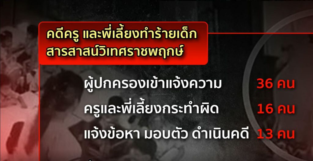ด้าน พล.ต.ต.ไพศาล วงศ์วัชรมงคล ผู้บังคับการตำรวจภูธรจังหวัดนนทบุรี เปิดเผยหลังประชุมความคืบหน้าคดีว่า ล่าสุดมีผู้ปกครองแจ้งความดำเนินคดี 36 คน โดยผู้ปกครองส่วนหนึ่งเป็นผู้เสียหายในหลายคดี ภาพรวมมีครูและพี่เลี้ยงกระทำผิดรวม 16 คน ซึ่งมีการแจ้งข้อหา, มอบตัว และดำเนินคดีไปแล้ว 13 คน และวันนี้เข้ามอบตัวเพิ่มอีก 3 คน คือ “ครูนิ”, “ครูหวาน” และ “ครูแวว” ในข้อหาทำร้ายร่างกายผู้อื่นจนเป็นเหตุให้เกิดอันตรายต่อร่างกายและจิตใจ รวมถึงกระทำการอันเป็นการทารุณกรรมต่อร่างกายหรือจิตใจเด็ก ส่วน “พี่เลี้ยงจุ๋ม” ถูกเอาผิด 12 คดี