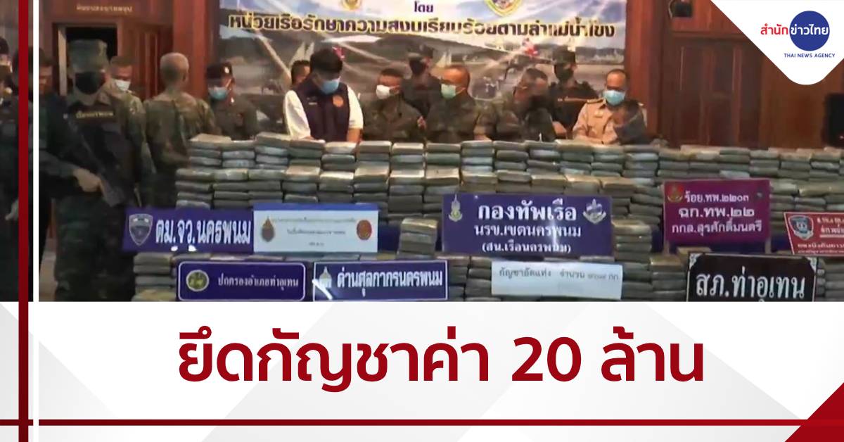 หน่วยเรือรักษาความสงบเรียบร้อยตามลำน้ำโขงนครพนม สนธิกำลังหน่วยงานที่เกี่ยวข้อง แถลงตรวจยึดกัญชา 907 แห่ง น้ำหนักแท่งละ 1 กิโลกรัม มูลค่าเกือบ 20 ล้านบาท ได้เมื่อกลางดึกที่ผ่านมา โดยกัญชาทั้งหมดลอบขนมาจาก สปป ลาว ทางเรือหางยาวแบบกองทัพมด และนำมาพักไว้ริมโขง พื้นที่บ้านตาลปากน้ำ อ.ท่าอุเทน ซึ่งเป็นจุดเชื่อมระหว่างแม่น้ำสงครามกับแม่น้ำโขง แต่เมื่อเจ้าหน้าที่แสดงตัว คนขนกลับไหวตัวหลบหนีไปได้ ขณะที่ของกลางพบบรรจุกระสอบสีดำ 20 กระสอบ