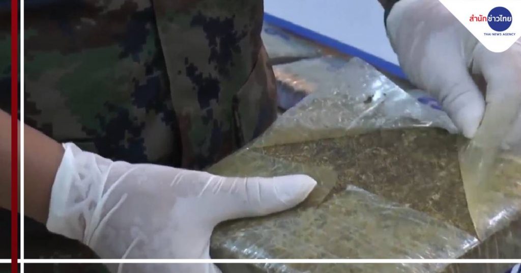 นครพนม 8 ต.ค.- นรข.นครพนม แถลงยึดกัญชา 907 แห่ง หนักแท่งละ 1 กิโลกรัม มูลค่าเกือบ 20 ล้านบาท เมื่อกลางดึกที่ผ่านมา โดยลอบขนมาจาก สปป ลาว ทางเรือหางยาวแบบกองทัพมด และนำมาพักไว้ริมโขง