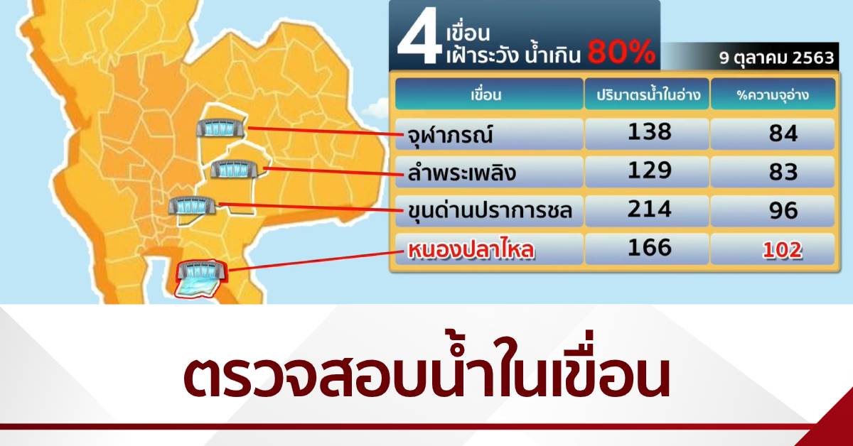 สำหรับภาพรวมเขื่อนที่มีปริมาตรน้ำในเขื่อนมากกว่าร้อยละ 80 ประกอบด้วย เขื่อนจุฬาภรณ์ จังหวัดชัยภูมิ มีปริมาตรน้ำ 138 ล้านลูกบาศก์เมตร หรือร้อยละ 84 เขื่อนลำพระเพลิง จังหวัดนครราชสีมา มีปริมาตรน้ำ 129 ล้านลูกบาศก์เมตร หรือร้อยละ 83 ส่วนที่เขื่อนหนองปลาไหล จังหวัดระยอง มีปริมาตรน้ำ 166 ล้านลูกบาศก์เมตร หรือร้อยละ 102 คือเกินระดับกักเก็บปกติไปแล้ว