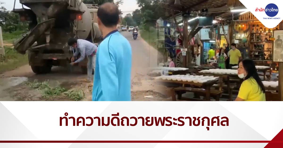 เด็กหนุ่มผู้รับเหมาพร้อมทีมงาน ออกตระเวนซ่อมแซมผิวถนนทางเข้าหมู่บ้านที่เป็นหลุมเป็นบ่อ ให้กลับมาใช้งานได้ตามปกติ เพื่อน้อมรำลึกและบำเพ็ญกุศล ถวายเป็นพระราชกุศล เนื่องในวันคล้ายวันสวรรคต ในหลวงราชกาลที่ 9