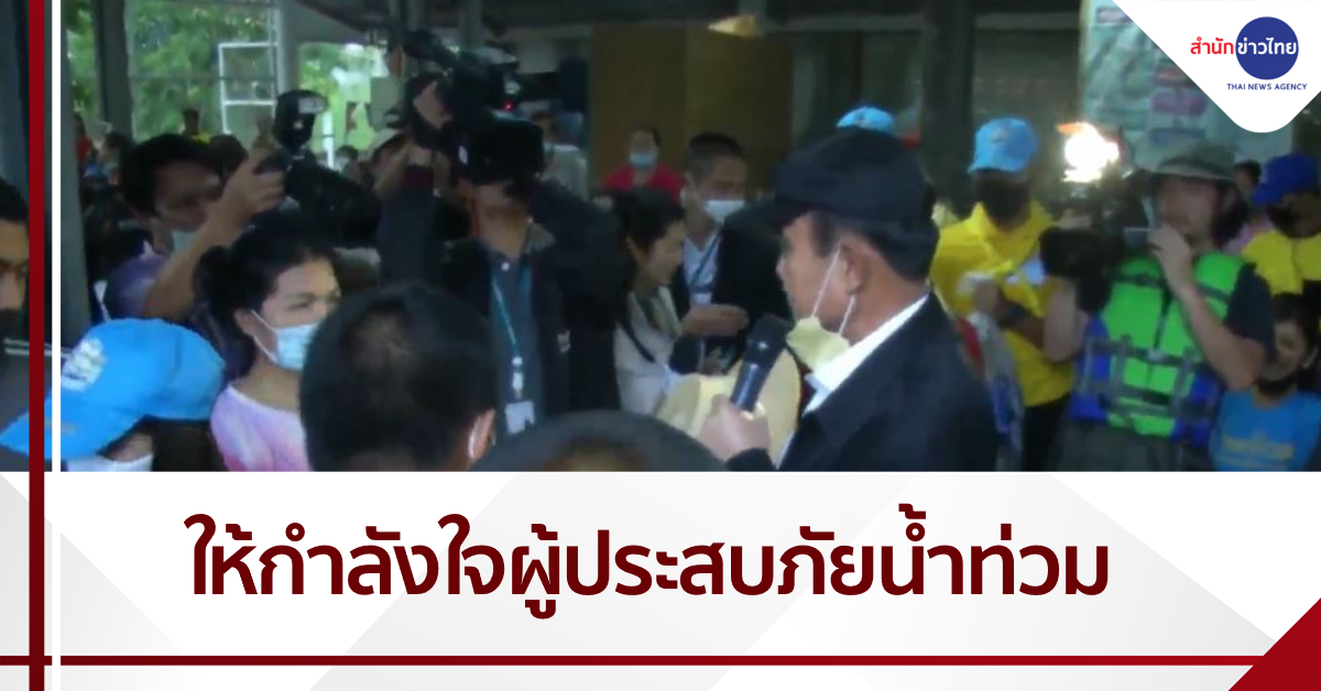 ขณะที่นายวิเชียร จันทรโณทัย ผู้ว่าราชการจังหวัดนครราชสีมา รายงานสถานการณ์ในภาพรวมว่า ขณะนี้มีพื้นที่ได้รับผลกระทบจากน้ำท่วม 9 อำเภอ ได้แก่ อำเภอเมือง ปักธงชัย โชคชัย ปากช่อง สูงเนิน โนนสูง พิมาย ขามทะเลสอ และเสิงสาง ถูกน้ำท่วมบ้านกว่า 3,000 หลัง ได้รับผลกระทบกว่า 20,000 ครัวเรือน พื้นที่การเกษตรกว่า 52,000 หมื่น 2 ไร่ ฟังรายงานสรุปเสร็จราวครึ่งชั่วโมง ทางเจ้าหน้าที่เทศบาลเมืองเมืองปักได้ส่งเสียงร้องให้กำลังใจและร่วมถ่ายรูปกับนายกรัฐมนตรี ก่อนขึ้นรถบรรทุกเดินสายพูดให้กำลังใจชาวปักธงชัย พร้อมพูดเปิดโอกาสให้ชูสามนิ้วได้ ชาวบ้านหลายคนต่างควักมือถือขึ้นมาถ่ายรูป ยกนิ้วโป้ง มีชูนิ้วต่อต้านบ้างประปราย โดยจุดหมายอยู่ที่ชุมชนบ่อปลา ที่นี่นายกรัฐมนตรีได้มอบถุงยังชีพให้ชาวบ้าน พูดให้กำลังใจต่อสู้ฝ่าฟันวิกฤติน้ำท่วม และยังย้ำให้รักษา 3 สถาบันหลักของชาติไว้ ความขัดแย้งขอให้ลดลงก่อน เพราะอยู่ในช่วงเศรษฐกิจไม่ดี และยังต้องเฝ้าระวังโรคโควิด-19 โดยชาวบ้านได้เปล่งเสียงลุงตู่สู้ๆ เรารักลุงตู่ ให้กำลังใจนายกรัฐมนตรีเช่นกัน ซึ่งนายกรัฐมนตรีใช้เวลาอยู่ปักธงชัยราว 1 ชั่วโมงครึ่ง