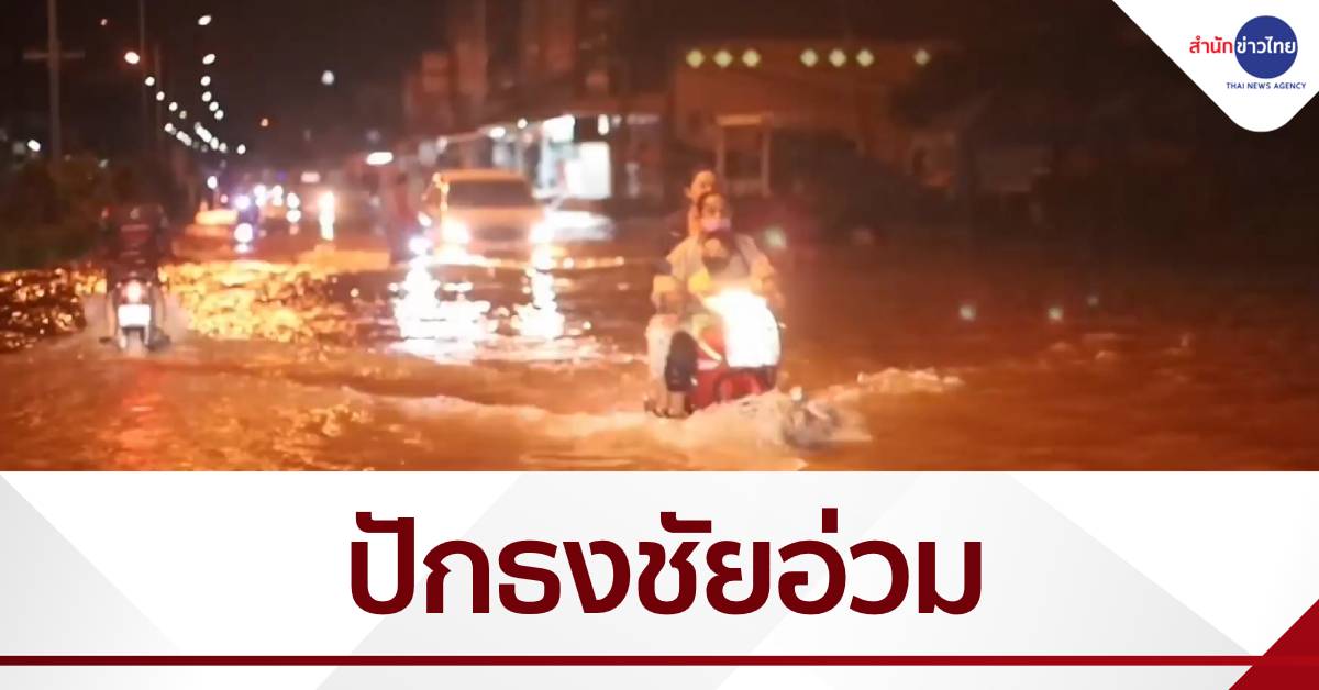 ช่วง 21.00 น. เมื่อคืนที่ผ่านมา (19 ต.ค.) มวลน้ำจำนวนมากทะลักท่วมสนามหน้าที่ว่าการอำเภอปักธงชัย จ.นครราชสีมา ระดับน้ำสูงขึ้นอย่างต่อเนื่อง แต่ยังไม่ท่วมถึงตัวอาคารที่ทำการ น้ำยังไหลทะลักเข้าท่วมพื้นที่เขตเศรษฐกิจตัวเมืองขยายวงกว้างมากขึ้น ระดับน้ำจากช่วงเย็นอยู่ที่ 20-30 เซนติเมตร สูงขึ้นเป็น 60-80 เซนติเมตร ชาวบ้านใน 14 ชุมชน กว่า 3,000 ครัวเรือน ต้องใช้ชีวิตอยู่อย่างยากลำบาก ต่างขนย้ายสิ่งของ รถยนต์ รถจักรยานยนต์ไปไว้บริเวณที่สูง บางส่วนย้ายไปพักอาศัยที่ศูนย์อพยพผู้ประสบภัย