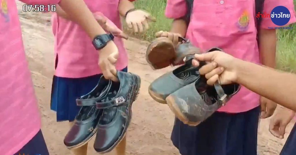 ศรีสะเกษ 20 ต.ค.-นักเรียน-ชาวบ้าน ร้องเรียนถนนสายบ้านพิงพวย-หนองจิก จ.ศรีสะเกษ กว่า 7 กม. พังเป็นหลุมเป็นบ่อ สัญจรผ่านหน้าฝนโคลนเปื้อนตัว เสี่ยงอุบัติเหตุ เสื้อนักเรียนกลายเป็นสีแดง