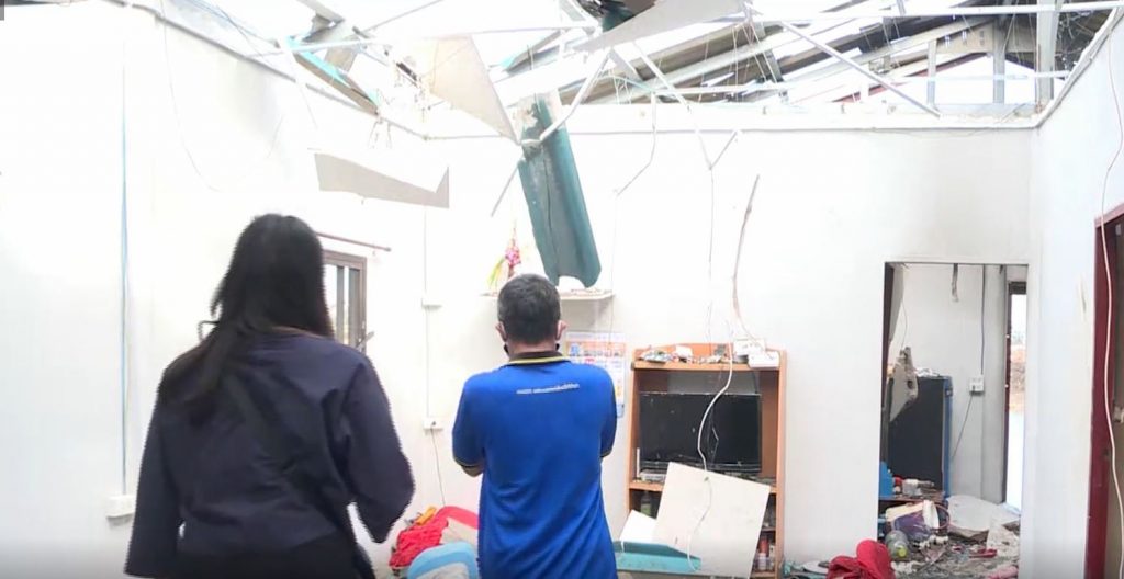 โดยจากการสำรวจความเสียหาย บ้านชั้นเดียวที่เพิ่งสร้างเสร็จเมื่อ 2 เดือนก่อน ด้วยเงินหลักล้านบาท พังแทบไม่เหลือซาก หลังได้รับผลกระทบจากแรงระเบิด และเพลิงที่ลุกไหม้ ทำให้หลังคาบ้านพังไปครึ่งหนึ่ง หน้าต่างที่เป็นกระจกแตกกระจายอยู่บนพื้น ข้าวของเครื่องใช้แทบทุกชิ้นได้รับความเสียหาย จนแทบใช้การไม่ได้