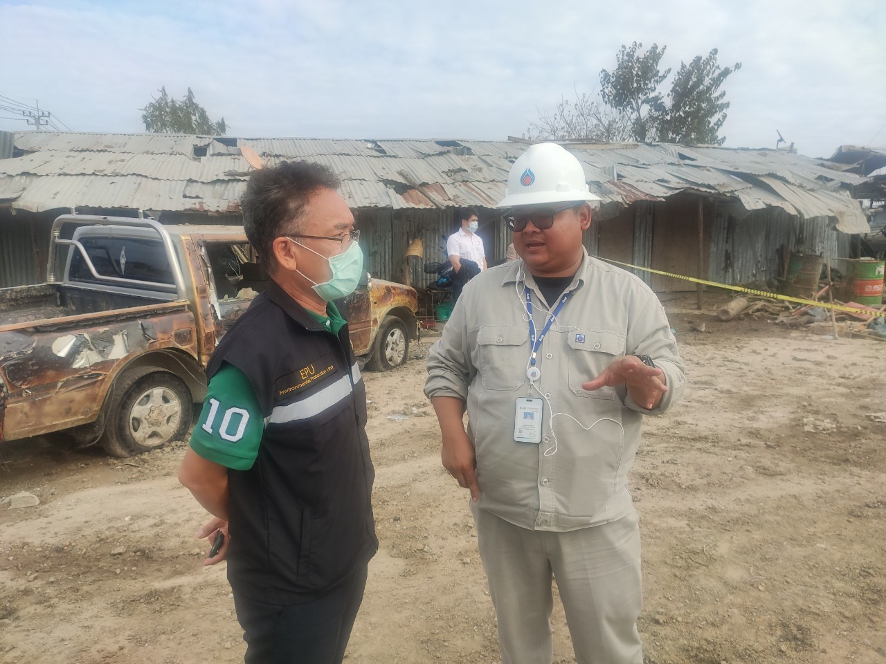 นายอาวีระ ภัคมาตร์ ผู้อำนวยการสำนักงานสิ่งแวดล้อมภาคที่ 13 (ชลบุรี) และนายชายชาญ เตโชทินกร ผู้อำนวยการสำนักงานทรัพยากรธรรมชาติและสิ่งแวดล้อมจังหวัดสมุทรปราการ พร้อมด้วยเจ้าหน้าที่ลงพื้นที่เข้าตรวจสอบกรณีเหตุระเบิดท่อส่งก๊าซเอ็นจีวี ของบริษัท ปตท.จำกัด (มหาชน) ส่งมาจากแหลมฉบัง เกิดการระเบิดขึ้นบริเวณนิคมอุตสาหกรรมเอเชียสุวรรณภูมิ ภายในซอยโรงเรียนเปร็งวิสุทธาธิบดี ใกล้กับสถานีตำรวจภูธรเปร็ง อำเภอบางบ่อ จังหวัดสมุทรปราการ จากการระเบิดส่งผลให้ก๊าซเอ็นจีวีฟุ้งกระจายสู่บรรยากาศและเกิดการติดไฟระเบิดขึ้นในรัศมี ประมาณ 300 เมตร เบื้องต้นประเมินความเสียหายมีผู้ได้รับบาดเจ็บและเสียชีวิต อาคารบ้านเรือนและยานพาหนะรับความเสียหายจำนวนมาก รวมทั้งสถานีตำรวจภูธรเปร็งและโรงเรียนเปร็งวิสุทธาธิบดีบางส่วนได้รับความเสียหาย มีการเผาไหม้เศษหญ้า อาคาร ยานพาหนะต่างๆ แม้จะควบคุมเปลวไฟได้แล้วแต่ยังมีควันจากการเผาไหม้หลงเหลือ