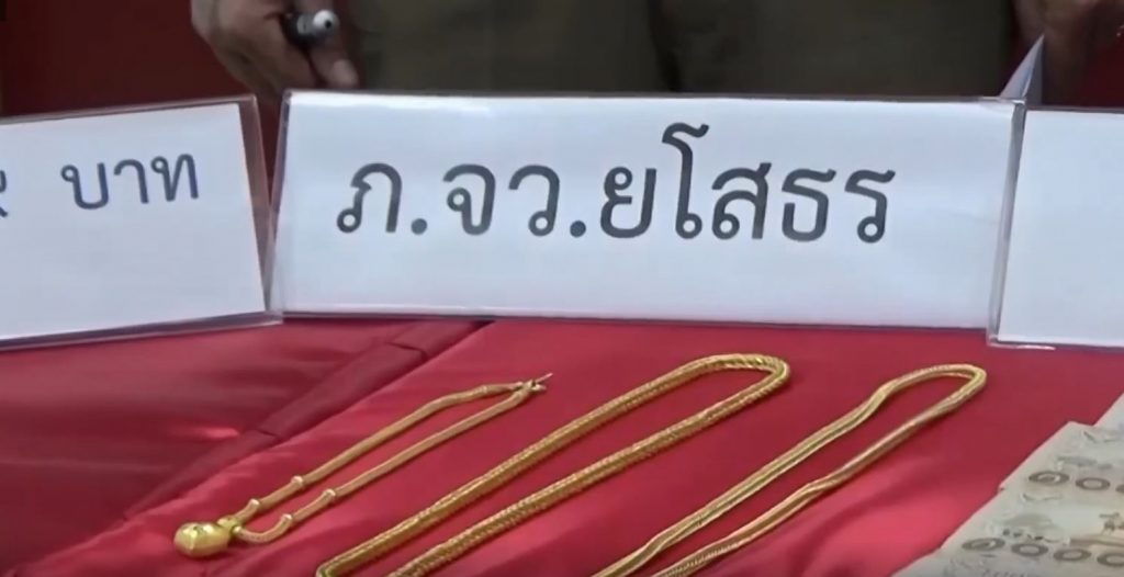 หลังจากตำรวจชุดสืบสวน สภ.ไทยเจริญ จ.ยโสธร ได้รับแจ้งว่าคนร้ายบุกงัดบ้านเลขที่ 11 หมู่ที่ 1 ต.ส้มผ่อ อ.ไทยเจริญ จ.ยโสธร เมื่อช่วงบ่ายวันที่ 19 ตุลาคม ผกก.สภ.ไทยเจริญ จึงสั่งชุดสืบสวนออกแกะรอยคนร้าย พร้อมสอบปากคำผู้เสียหาย คือนายทองอ่อน และนางหมุด อนุกูลประชา สามีภรรยาที่ถูกหวยรางวัลที่ 1 งวดวันที่ 16 กรกฎาคม 2562 เป็นเงิน 12 ล้านบาท เบื้องต้นทราบว่า คนร้ายได้ทรัพย์สินไปเป็นเงินสดจำนวนหนึ่ง พร้อมหยิบสมุดฝากเงินธนาคารของ 2 แบงก์ และพันธบัตรรัฐบาลที่ซื้อไว้ 5 เล่ม รวมถึงโฉนดที่ดิน 2 ใบเนื้อที่ 9 ไร่ และ 7 ไร่ จากนั้นคนร้ายได้นำสมุดฝากเงินธนาคารที่มียอดบัญชี 2.9 ล้านบาท ไปถอนเงินออกจากบัญชีจนหมด
