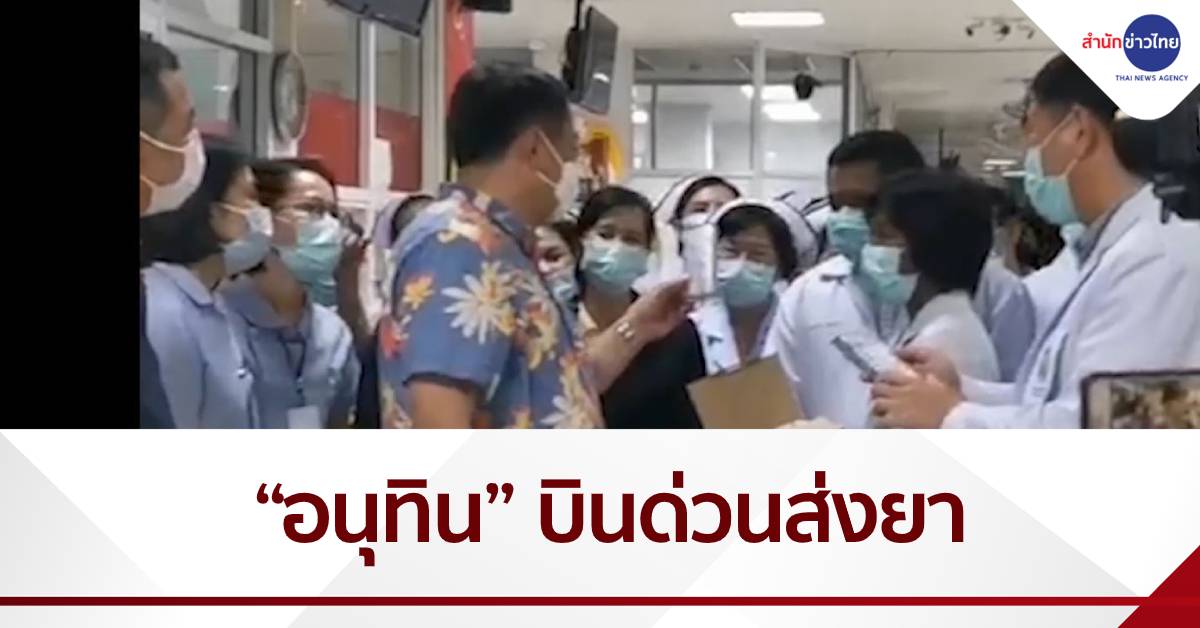 ช่วงเย็นที่ผ่านมา นายอนุทิน ชาญวีรกูล รองนายกรัฐมนตรีและรัฐมนตรีว่าการกระทรวงสาธารณสุข ได้เดินทางมาที่เกาะสมุย จังหวัดสุราษฎร์ธานี เพื่อนำยาฟาวิพิราเวียร์ ซึ่งเป็นยารักษาโรคโควิด-19 จำนวน 1,000 เม็ด มามอบให้กับทางโรงพยาบาล เพื่อใช้ในการรักษาผู้ติดเชื้อโควิด ที่มีอาการระดับรุนแรง ซึ่งผู้ป่วยหญิงชาวฝรั่งเศสวัย 57 ปี ที่พบว่าป่วยโควิด แพทย์ระบุว่าอาการยังไม่เข้าขั้นรุนแรง แต่เพื่อเป็นการเตรียมความพร้อมในการรักษา จึงจำเป็นที่ต้องมียาชนิดนี้เตรียมไว้ก่อน