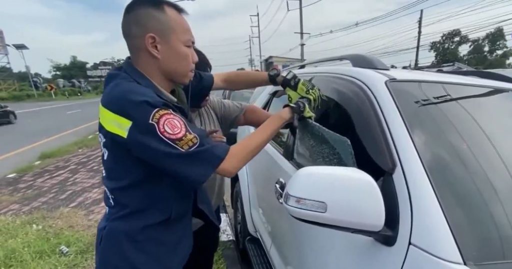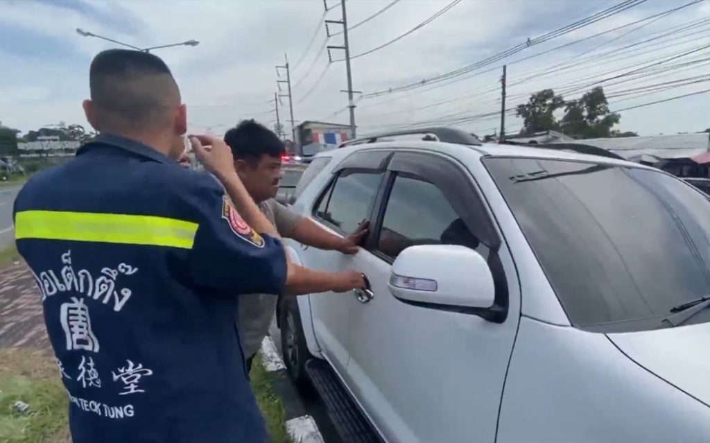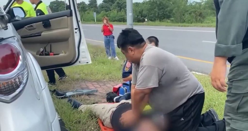 อาสากู้ภัยพยายามเคาะรถ และตะโกนเรียกชายที่หมดสติภายในรถที่ติดเครื่องยนต์ไว้ แต่ไม่ได้รับการตอบสนอง โดยชายที่อยู่ในรถอยู่ในสภาพหมดสติหลังพวงมาลัย มือซ้ายยังกำเกียร์ คอตกเอียงไปทางซ้าย ดวงตาเปิดโพลง มีน้ำลายไหลออกจากข้างปากเจ้าหน้าที่จึงตัดสินใจทุบกระจก รีบนำตัวมาปั้มหัวใจก่อนส่งโรงพยาบาล ตรวจค้นในรถ พบบัตรประจำตัวระบุชื่อนายอุดม หวะสุวรรณ รองประธานกรรมการศูนย์ อปพร. เขตทุ่งครุ และเป็นกรรมการผู้จัดการ บริษัทรักษาความปลอดภัย จีที อินเตอร์การ์ด จำกัด จังหวัดสมุทรปราการ ซึ่งอาการล่าสุดยังน่าเป็นห่วง อยู่ห้องไอวียู และยังไม่ทราบสาเหตุว่าเกิดจากอะไร.-สำนักข่าวไทย