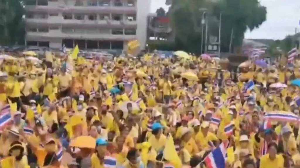 ที่จ.นครศรีธรรมราช มีประชาชนในหลายพื้นที่ในจังหวัดมารวมตัวกันนับพันคน โดยสวมใส่เสื้อสีเหลืองเป็นสัญลักษณ์ แล้วเดินขบวนไปตามถนนราชดำเนิน ในเขตเทศบาลนครนครศรีธรรมราช เพื่อร่วมประกาศเจตนารมณ์ ในการปกป้องสถาบัน และพร้อมที่จะต่อต้านการจาบจ้วงสถาบันจนถึงที่สุด โดยตลอดเส้นทางของการเดินขบวนประชาชนได้เปล่งเสียงตะโกนพร้อมเรียกร้องให้ยุติการก้าวล่วงสถาบันไม่ว่าด้วยวิธีใดก็ตาม ซึ่งการเดินขบวนในครั้งนี้ผ่านไปยังวัดพระมหาธาตุวรมหาวิหาร หลังจากนั้นก็ได้ไปรวมตัวกันที่สวนสมเด็จพระศรีธรรมาโศกราช.-สำนักข่าวไทย