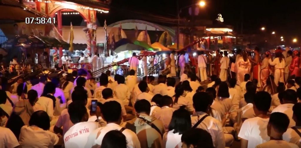 สำหรับพิธีส่งพระองค์กิวอ๋องไต่เต่ในคืนที่ผ่านมามีนักท่องเที่ยวและประชาชนชาวตรัง นับ 1 หมื่นคน ร่วมพิธีอย่างเนืองแน่น.-สำนักข่าวไทย