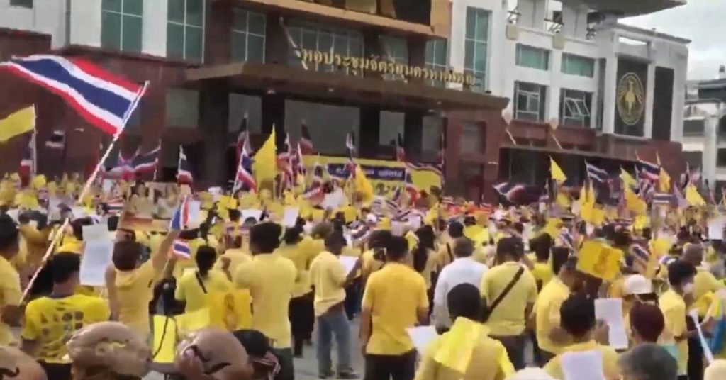 ชาวอำเภอหัวไทร จังหวัดนครศรีธรรมราช ทุกภาคส่วนมีทั้งข้าราชการกำนัน ผู้ใหญ่บ้าน องค์กรปกครองส่วนท้องถิ่น อสม. ประชาชนทุกเพศทุกวัยกว่า 1,000 คน พร้อมใจสวมเสื้อเหลือง นำธงชาติไทยและธงตราสัญลักษณ์ วปร. เข้าร่วมกิจกรรมปกป้องสถาบันพระมหากษัตริย์ ขบวนมวลชนออกจากเทศบาลตำบลหัวไทรออกไปตามถนนในตลาด เพื่อเรียกร้องให้หยุดจาบจ้วงสถาบันพระมหากษัตริย์ ก่อนจะไปรวมตัวกันอีกครั้งที่บริเวณหน้าเทศบาลตำบลหัวไทร.-สำนักข่าวไทย