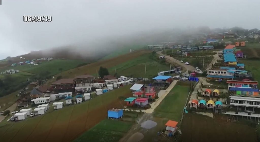 โดยรีสอร์ตแห่งแรกอยู่บริเวณทางขึ้นจุดวัดอุณหภูมิ มีลักษณะคล้ายห้องแถว โดยผู้ประสบเหตุคือ นายสาริน แซ่ท้าว อายุ 23 ปี ซึ่งเป็นผู้ดูแลรีสอร์ต เปิดเผยว่า เหตุการณ์ดังกล่าวเกิดขึ้นเมื่อเวลาประมาณ 21.00 น. วันที่ 20 ต.ค.2563 ตนเองได้เข้าไปอาบน้ำในห้องน้ำพร้อมกับเปิดเครื่องทำน้ำอุ่นที่ใช้แก๊สหุงต้มเป็นตัวทำความร้อน แต่ไม่ได้เปิดพัดลมระบายอากาศ เมื่ออาบน้ำได้ประมาณ 5 นาที ก็รู้สึกเวียนหัวจึงได้สระผมเพื่อให้หาย เสร็จแล้วก็ปิดเครื่องทำน้ำอุ่นและเตรียมจะเปิดประตูห้องน้ำ แต่ก็รู้สึกอ่อนแรงและวูบหมดสติไป มารู้ตัวอีกทีประมาณเที่ยงคืนก็พบว่านอนอยู่ที่โรงพยาบาลแล้ว จากการสอบถามทราบว่า ยายของตนเองเห็นเข้าห้องน้ำนานผิดปกติ จึงเข้ามาเรียกแต่ไม่มีเสียงตอบจึงได้ไปตามญาติๆ มาพังประตูเข้าไป ก็พบว่าตนเองนอนสลบอยู่จึงได้รีบนำตัวส่งโรงพยาบาล ซึ่งก็นอนรักษาตัวอยู่ 2 วัน สามารถกลับมาทำงานได้ตามปกติ