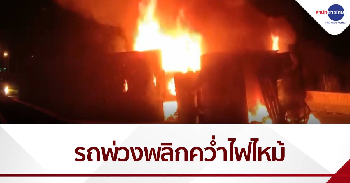 ปราจีนบุรี 28 ต.ค.-อุบัติเหตุสยอง รถบรรทุกพ่วงจากโคราชมุ่งหน้าชลบุรี เบรกแตกขณะลงเขา ก่อนเสียหลักพลิกคว่ำไฟลุกไหม้ มีผู้บาดเจ็บ 2 คน เด็กวัยเดือนเศษกระเด็นออกจากรถเสียชีวิต