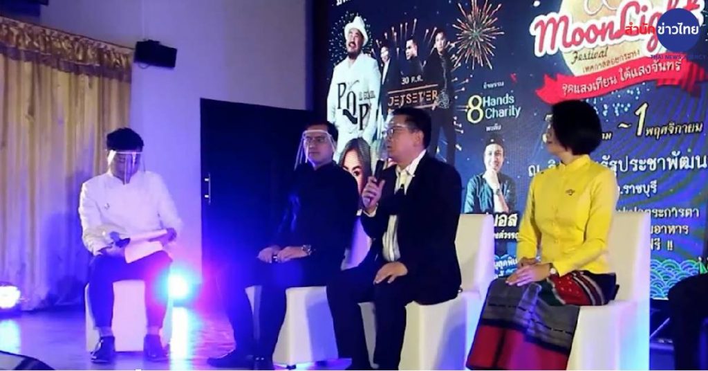 นายนภินทร ศรีสรรพางค์ ผู้ช่วยรัฐมนตรีประจำกระทรวงการท่องเที่ยวและกีฬา นางสาวสรียา บุญมาก ผู้อำนวยการการท่องเที่ยวแห่งประเทศไทย (ททท.) สำนักงานราชบุรี และหน่วยงานที่เกี่ยวข้อง ร่วมแถลงข่าวงานเทศกาลลอยกระทง “Candle & Moon Light Festival จุดแสงเทียน ใต้แสงจันทร์” ซึ่งกำหนดจัดขึ้นตั้งแต่วันที่ 30 ตุลาคม-1 พฤศจิกายน บริเวณริมเขื่อนรัฐประชาพัฒนา อำเภอเมือง ราชบุรี